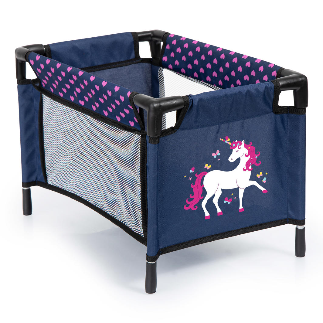 The travel bed is suitable for dolls up to 42 cm. The sleeping bag in matching design keeps the little darling warm. In order to take care of the plush toy or the doll, care accessories like powder or cream is included.