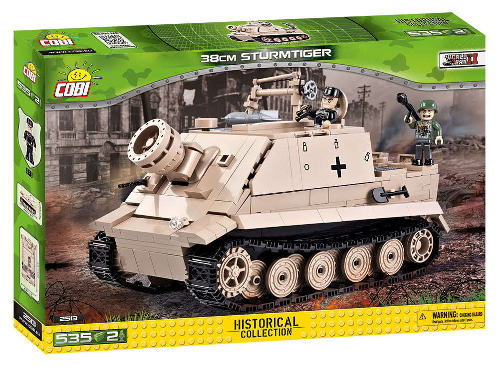 The Sturmtiger block model has an engine hood that opens, a vertically movable cannon and movable arm for loading rockets.