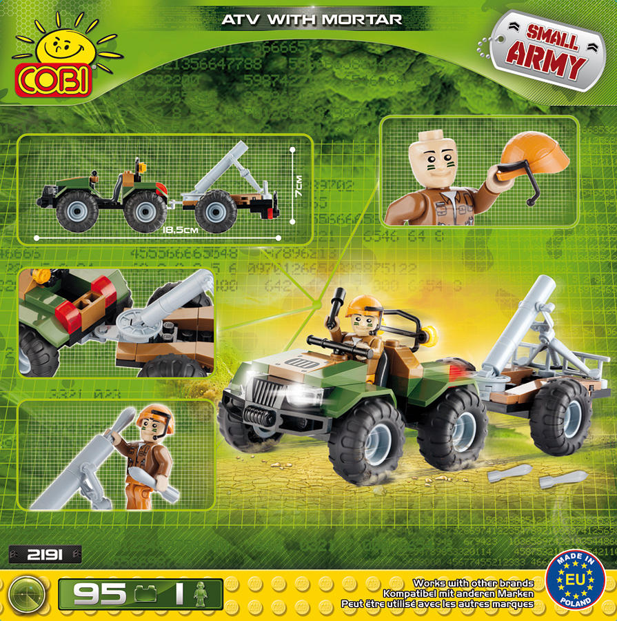 The set ATV with Mortar from the Small Army series from Cobi S.A. consists of ninety five Cobi bricks and one figurine.