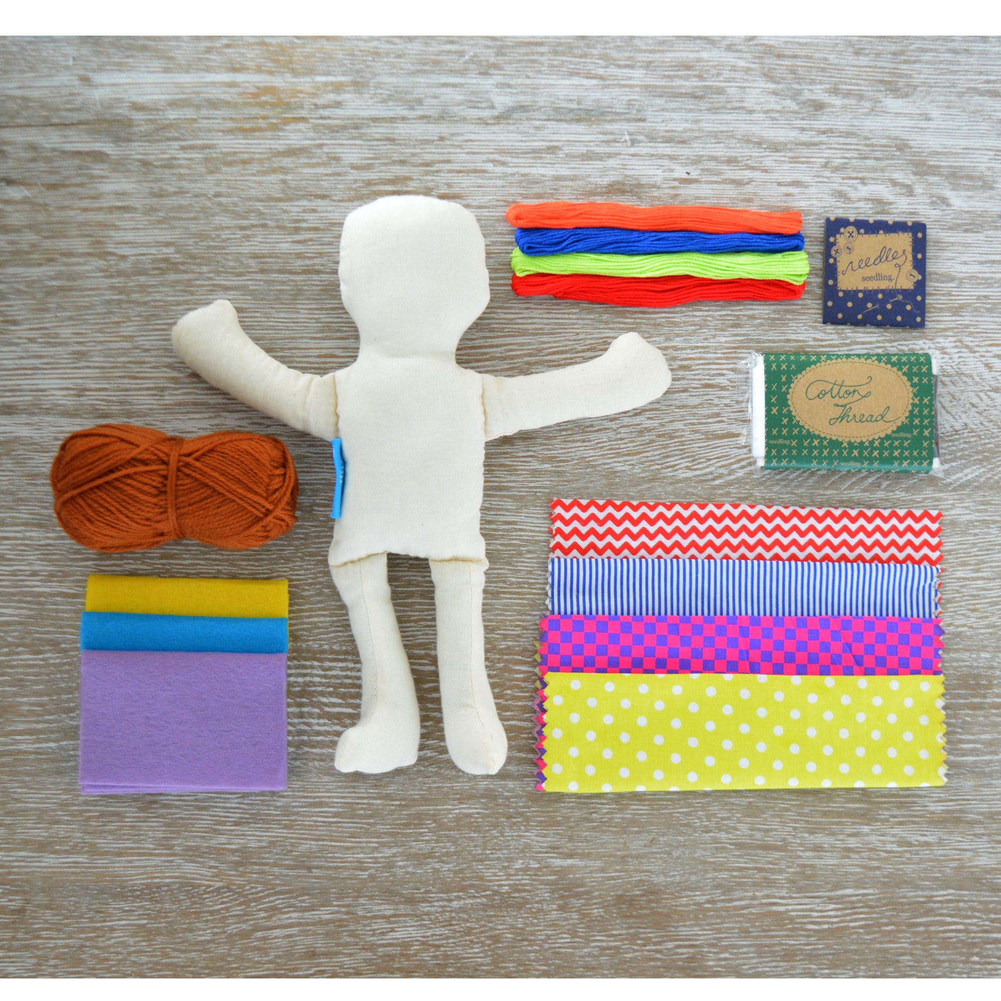 Fashion an adorable pal to be your trusty sidekick on all your adventures. Our easy DIY kit comes with a cotton doll, yarn, felt pieces, and assorted fabrics to design a unique handmade doll. What your new friend will look like is totally up to you.