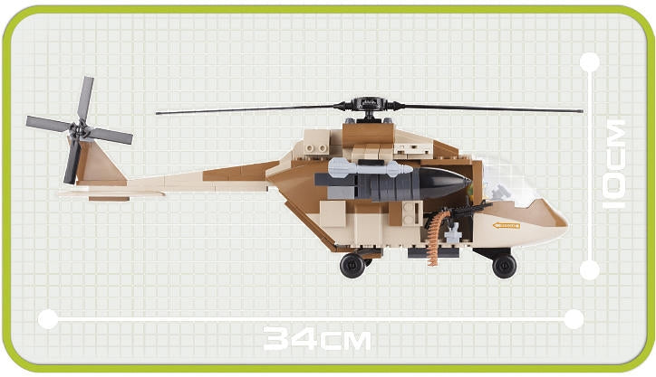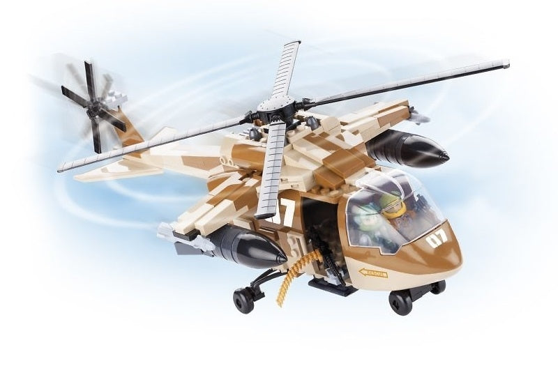 The model features a heavily armed attack helicopter ready for any battle.Its equipped with a machine gun and missiles. Reinforce your troops with Small Army tanks, planes, helicopters, military trucks or take command of a military battleship and create your own army with COBI blocks!