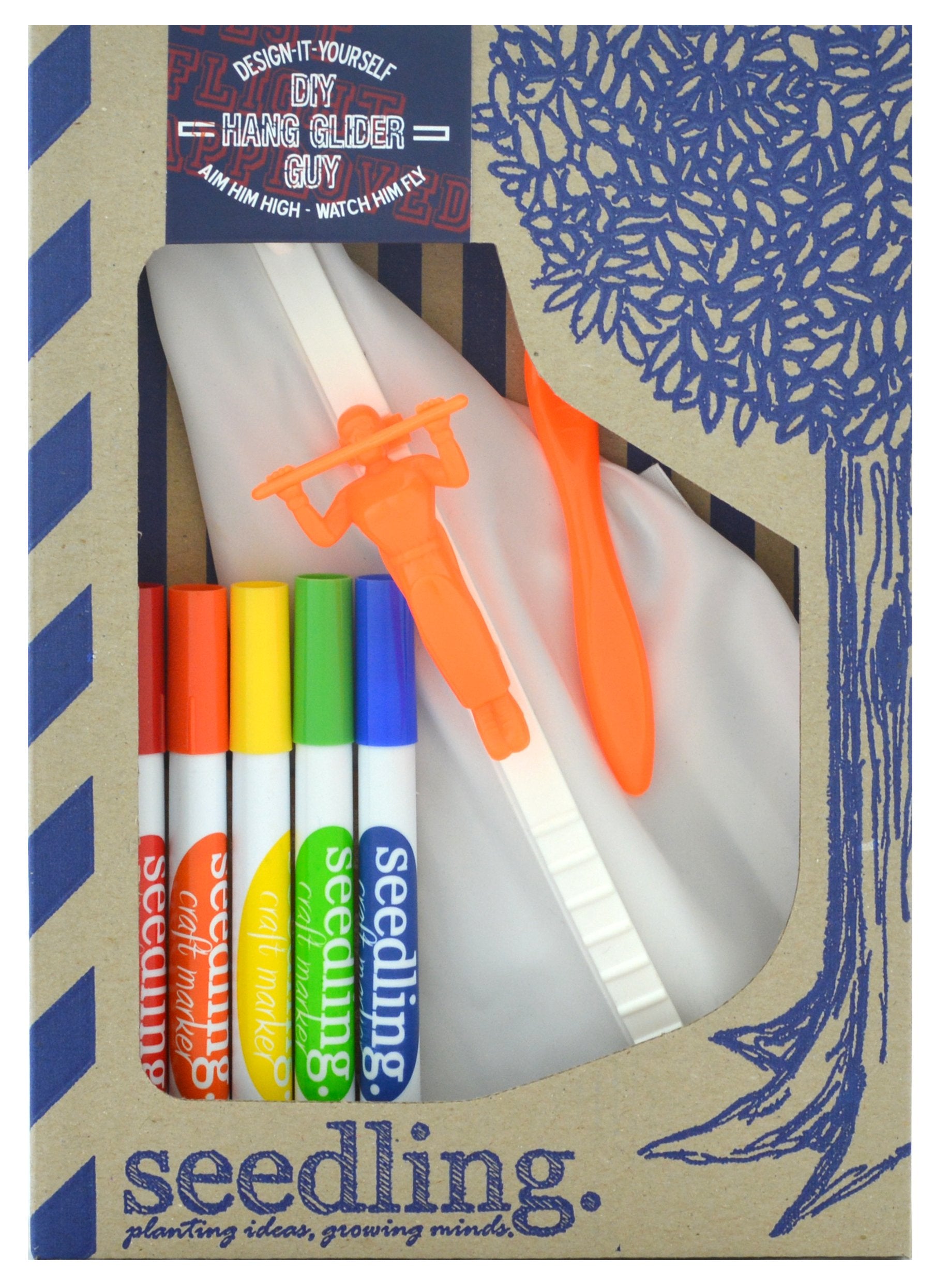 Decorate your daredevil buddy and get him ready for his next big adventure in the skies. Use the Seedling marker set to draw fun pictures, shapes, and write messages on your hang gliding friend. Launch your little buddy and watch him soar high!
