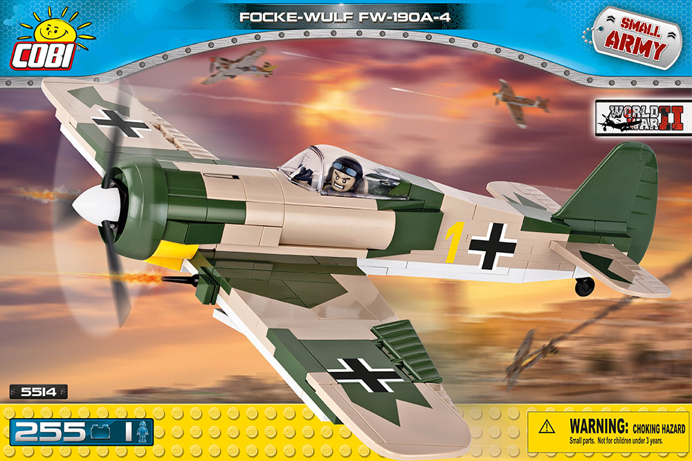 The Focke-Wulf FW 190A-4 was a German single-engine fighter plane. Between 1941 and 1945 there were about 20,000 planes in different versions produced. The plane was powered by a BMW 801 radial engine. Thanks to this high powered engine, the plane could reach the speed of 670 kph and the maximum flight level of 11,300 meters. Its construction was so simple that the components could easily be produced by companies that had no experience in productions for aviation.