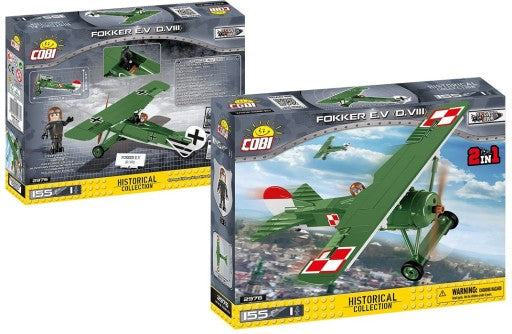 The Fokker E.V (D.VIII) aircraft model has a rotating propeller and rotating wheels. At the controls is a pilot figure that seated in the cockpit. With this plane that figure is inspired by the historical figure of Lieutenant Stefan Stec - precursor and hero of Polish aviation.