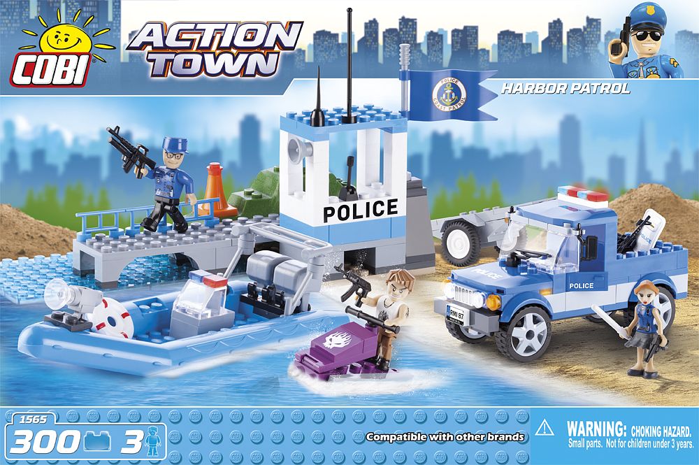 You can build a harbour police station, a patrol car with a trailer, a pontoon and a water scooter.