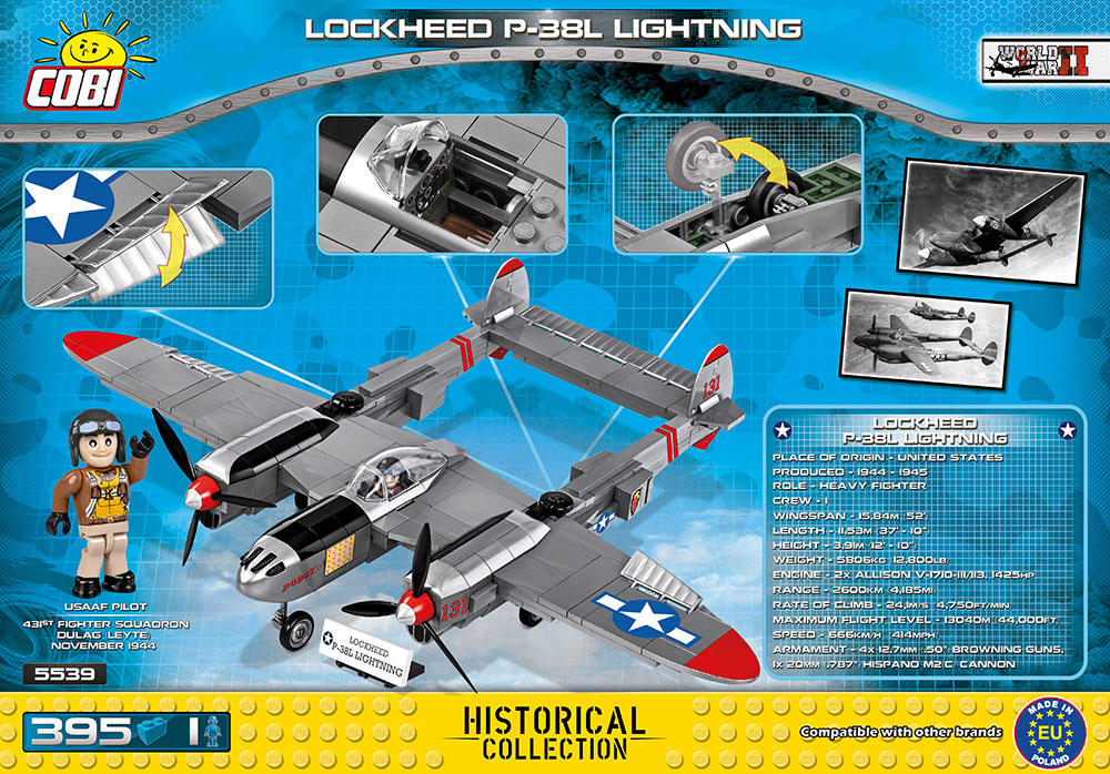 This new replica model from COBI has a removable pilot cabin, movable ailerons on its wings, wheels hidden in the chassis, 2 rotating propellers.