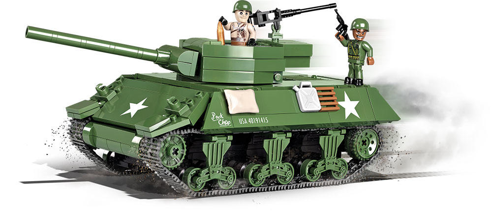 It employed a unique open turret whose goal was to reduce the massive weight of the tank. It was later covered by a light folding roof that was designed to protect the crew from grenades and explosion debris. This historic model by COBI of the American Tank Destroyer M36 Jackson is faithfully designed in a standard green color and is 1:35 scale. This is one of many vehicles included in the collection of American Armed Forces from the Historical Collection of WWII from COBI.