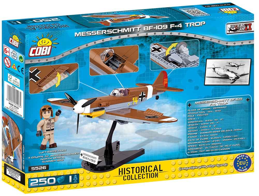 The Messerschmitt BF 109 F-4 Trop was a German single-engine fighter of metal construction, used during World War II mainly by the Luftwaffe. According to German pilots, the 109F version was the most aerodynamic. In August 1941, tropical version of this plane was devised (Me-109F-2/Trop and Me-109F-4/Trop).