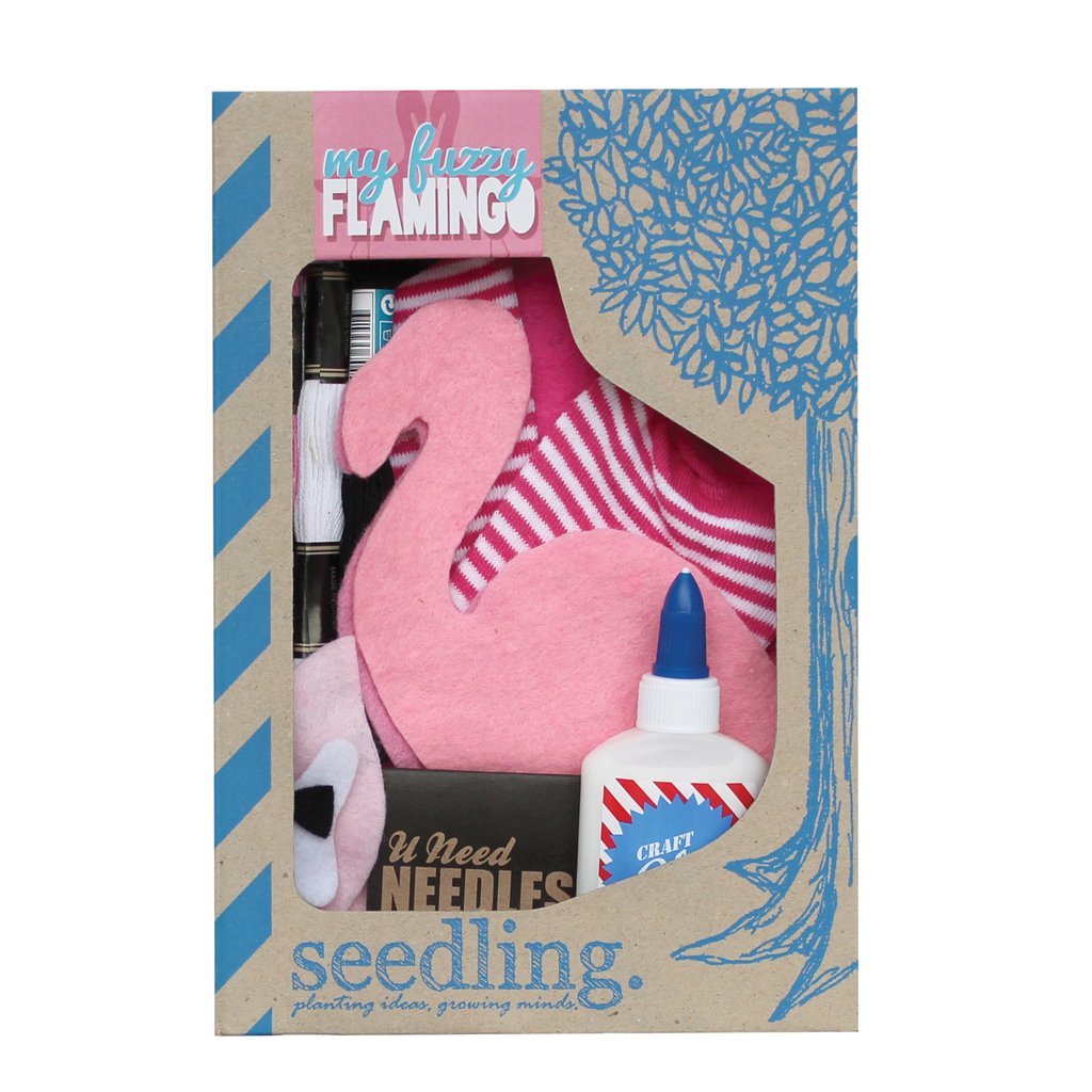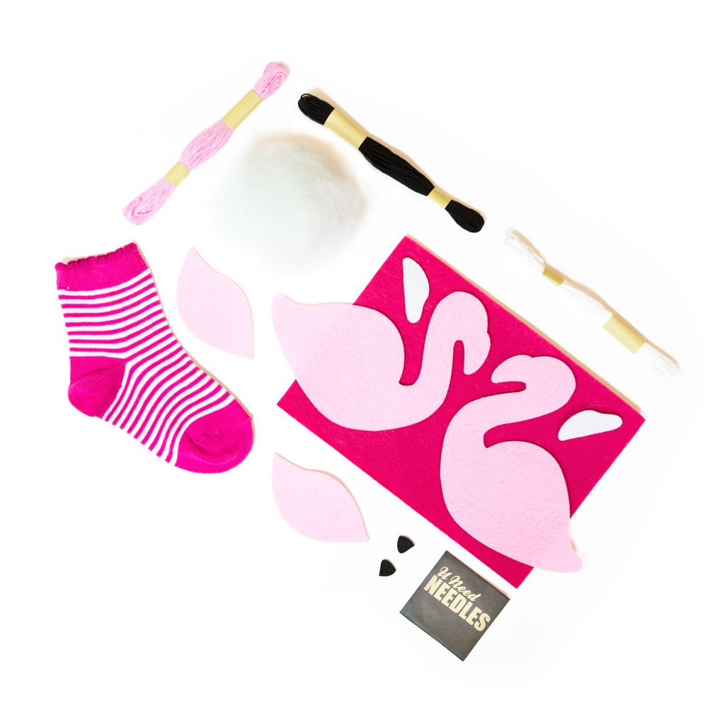 This easy to make DIY kit contains everything you need to craft a one-of-a-kind plushie bird with attitude: felt flamingo pieces, glitter glue, and a striped sock. Watch out world! You and your pink pal will make a dynamic duo. Perfect for beginning to intermediate sewers.