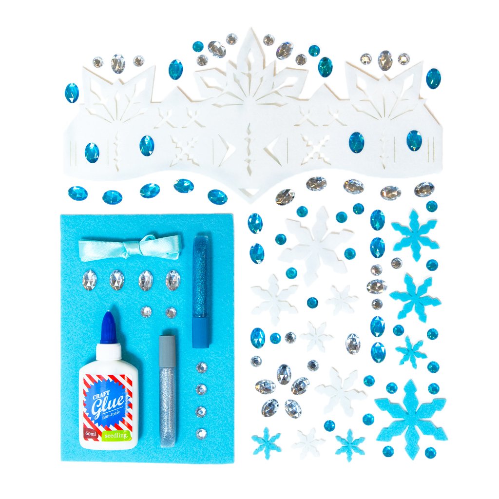 Design your own crown with an icy twist! This all in one DIY craft kit has everything you need to make a custom princess headpiece of your very own. Your unique design will shine in the magical frost of a winter wonderland.