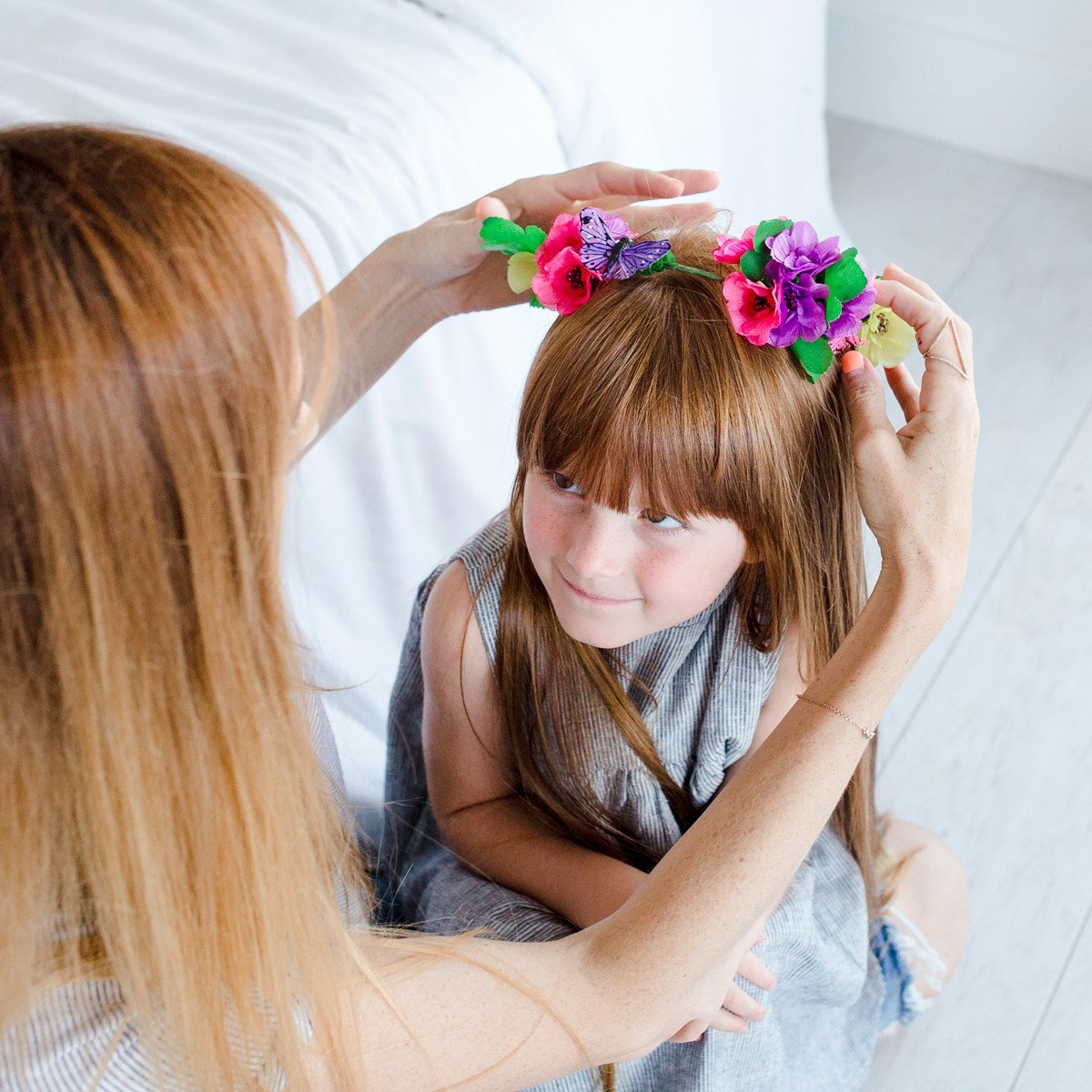 Rule over creatures in the enchanted forest of make believe with this beautiful fairy flower crown. Create lovely arrangements with a magical mix of assorted flowers, butterflies, and glitter. With a beautiful crown adorning your head, you'll be ready for any whimsical adventure.