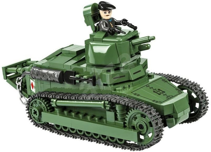 This tank model is unique due to its characteristic, narrow, movable tracks. COBI designers have perfectly reproduced these details and proportions of this tank. The model includes a figure of a tankman equipped with binoculars and a revolver.